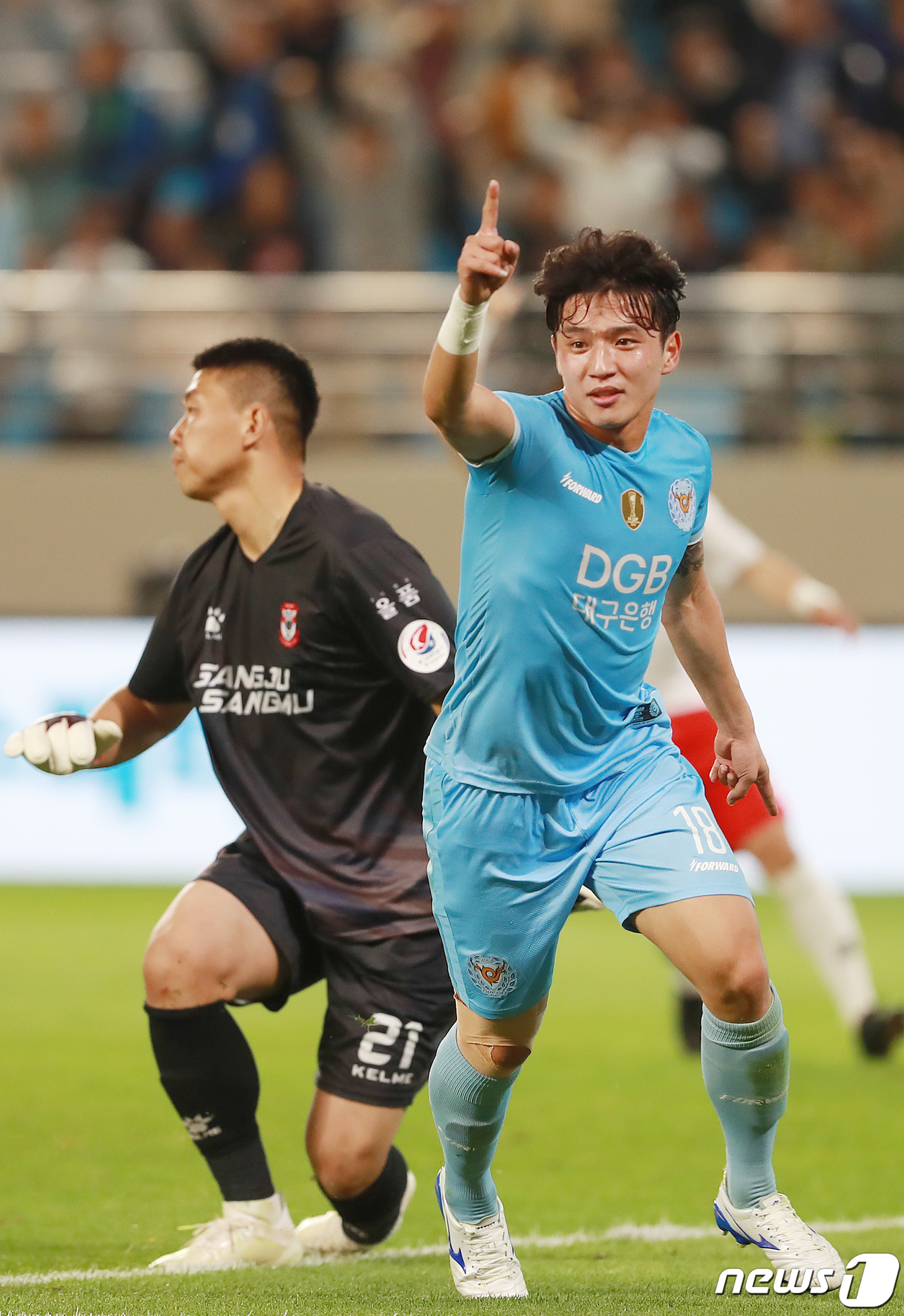 (대구=뉴스1) 공정식 기자 = 3일 오후 대구 북구 고성동 DGB대구은행파크에서 열린 ‘하나원큐 K리그1 2019’ 대구FC와 상주상무의 경기에서 대구FC 정승원이 후반 선제골을 성공시킨 뒤 기뻐하고 있다. 2019.5.3/뉴스1jsgong@news1.kr[© 뉴스1코리아(news1.kr), 무단 전재 및 재배포 금지]