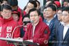 황 대표는 7일 부산 부산 자갈치시장에서 ‘국민 속으로-민생 투쟁 대장정’ 기자회견을 열어 ”소득주도성장이라는 자신들만의 도그마에 매달려 다른 의견들은 모두 외면하고 무시해 우리 경제가 마이너스 성장으로 추락, 경제 파탄의 길로 가고 있다“고 주장했다.