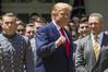 주먹 쥔 트럼프 도널드 트럼프 미국 대통령이 6일(현지시간) 백악관에서 미국 육·해·공군 사관학교 미식축구 경기 우승팀인 육군사관학교(웨스트포인트) ‘아미 블랙 나이츠’에게 ‘최고사령관 트로피’를 수여한 뒤 주먹을 들어보이고 있다. 워싱턴 | AP연합뉴스 |