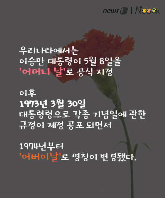 (서울=뉴스1) 김수경 에디터 = 5월 8일 어버이날이다. 이날만은 쑥스럽지만 사람들이 부모님께 카네이션으로 감사의 마음을 전한다. 그런데 왜 수많은 꽃들중에 카네이션일까? 어버이날의 유래와 카네이션에 담긴 의미에 대해 알아보자.