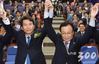 이달 8일 오후 서울 여의도 국회에서 열린 더불어민주당 제4기 원내대표 선출을 위한 의원총회에서 신임 원내대표에 선출된 이인영 후보(왼쪽)가 이해찬 대표와 손을 잡고 사진촬영을 하고 있다. / 사진=이동훈 기자 photoguy@ |