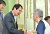 ▲박찬구 금호석유화학 회장(왼쪽 두번째)이 9일 서울시 은평구에 위치한 은평재활원을 찾아 시설 거주자와 인사를 나누고 있다. |