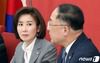 (서울=뉴스1) 김명섭 기자 = 나경원 자유한국당 원내대표(왼쪽)가 10일 서울 여의도 국회에서 홍남기 경제부총리 겸 기획재정부장관의 발언을 듣고 있다. 2019.5.10/뉴스1 <저작권자 © 뉴스1코리아, 무단전재 및 재배포 금지> |