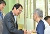 금호석유화학그룹은 지난 9일 서울 갈현로 은평재활원에서 중증장애인용 맞춤형 휠체어를 포함한 보장구 전달식을 가졌다. 박찬구 회장이 거주인과 인사를 하고 있다. |