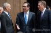 10일(현지시간) 워싱턴DC에서 고위급 무역협상을 마치고 중국 측 협상대표인 류허 부총리, 미국 므누신 재무장관, 미 무역대표부(USTR) 대표 로버트 라이트하이저가 이야기 나누는 모습(왼쪽부터) [AFP=연합뉴스] |
