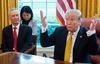 4일(현지시간) 백악관 대통령 집무실에서 류허(劉鶴) 중국 부총리와 도널드 트럼프 미국 대통령이 대화하고 있다. |