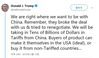 트럼프 대통령은 12일(현지시간) 트위터에서 “중국과 관련해 우리가 원하는 바로 그 위치에 있다”면서 “그들(중국)이 우리와 협상을 깨고 재협상을 시도했단 점을 기억하라“고 썼다.