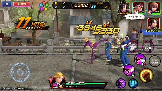 '킹오브파이터올스타'를 만나며 가장 놀란 점은 원작의 화려한 액션을 모바일에서도 그대로 살려낸 것이다. 대전 액션 장르의 원작을 수집형 액션 RPG로 풀어냈음에도 액션이 주는 재미는 살아 있다.