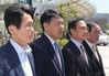 2일 종로구 서울대학교병원에 입원 치료 중인 문희상 국회의장 병문안을 마친 여야 4당 원내대표들이 취재진의 질문에 답하고 있다. 왼쪽부터 정의당 윤소하, 바른미래당 김관영, 더불어민주당 홍영표, 민주평화당 장병완 원내대표. /연합뉴스 |