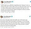 블랭크페인은 또 별도의 트위터에서는 관세가 미국 수입업체들이 구매처를 미국 또는 중국이 아닌 기업으로 변경하는 계기가 될 수 있으며, 이 과정에서 미국이 지불해야 하는 비용이 지금보다 조금 늘어날 수는 있지만, 결과적으로는 중국 기업들이 매출 손실을 감당해야 할 것이라고 주장했다.