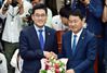 15일 국회에서 열린 바른미래당 원내대표 선출 의원총회에서 오신환 의원이 선출된 가운데 유승민 의원과 익수하고 있다. 이재문 기자 |