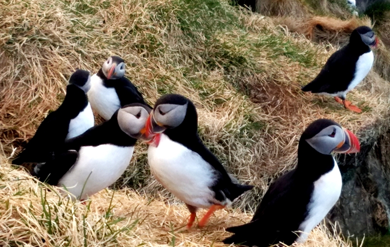 물개와 퍼핀 구경도 빼놓기 어렵다. 링로드에서 뻗어 나간 74번 국도를 40분쯤 달리면 나오는 스나이펠스네스반도의 이트리퉁가(ytri tunga) 해변에서 만화에서 막 튀어나온 듯한 물개 여러 마리를 만났다. 세 놈은 바위에 누워 햇볕을 쬐고 있었고 물 위에 머리통만 내밀며 헤엄치는 녀석도 있었다. 반드시 썰물 때에 맞춰 가야 한다. 작은 펭귄 같은 퍼핀은 아이슬란드를 상징하는 새다. 한때 사람들이 너무 많이 잡아먹어 멸종 위기에 처했다고 한다. 동부 중심 마을 에이일스스타디르에서 한 시간 가까이 떨어진 서식지 보르가르피아르다르회픈(Borgarfjarðarh?fn)에 이른 아침에 가면 근거리에서 볼 수 있다. 날아오를 때와 착륙할 때, 걸어 다닐 때 다리 모양이 요리조리 바뀐다. 그 모습이 앙증맞다.