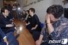 한 오월어머니회 회원이 15일 오전 광주 동구 옛 전남도청 별관에서 정동영 대표 등 민주평화당 당직자들과 이야기를 나누던 중 눈물을 훔치고 있다. 오월어머니회는 국립아시아문화전당 건립 과정에서 옛 전남도청 등 5 18 사적지가 헐리는 것에 반대해 982일째 옛 도청 별관에서 농성 중이다. 이들은 5 18 관련 망언을 일삼는 자유한국당의 기념식 참석에 반대한다는 입장을 평화당 의원들에게 전했다/사진=뉴스1 |