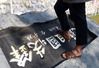 17일 오전 11공수여단 정문 앞에 있던 부대준공기념석이 광주 서구 5·18 자유공원으로 옮겨와 거꾸로 눕혀져 있다. 광주 연합뉴스 |