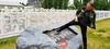 17일 오전 광주광역시 서구 5·18 자유공원에서 한 시민이 거꾸로 눕혀진 '전두환 기념석'을 밟고 있다. /김영근 기자 |
