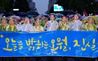 이용섭 광주광역시장이 지난 17일 오후 동구 금남로에서 열린 제39주년 5·18민중항쟁 기념 전야제에 참석하기 위해 5·18단체, 주요 기관, 정당, 시민사회단체 관계자 등과 함께 광주일고 사거리에서 금남로 전일빌딩 앞까지 쏟아지는 비를 맞으며 민주평화대행진을 펼치고 있다.사진=광주광역시 제공 |