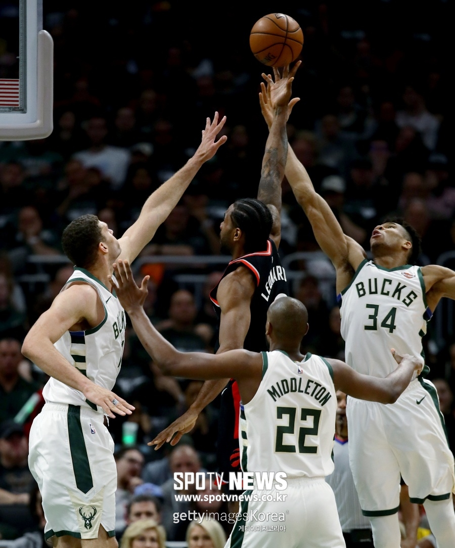 밀워키는 18일(한국 시간) 미국 위스콘신주 밀워키 파이서브 포럼에서 열린 2018-19 NBA(미국 프로 농구) 플레이오프 동부 콘퍼런스 파이널 2차전 토론토 랩터스와 홈경기에서 125-103으로 이겼다.