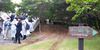 18일 5·18민주화운동기념식에 참석했던 황교안 자유한국당 대표가 시민들의 항의를 피해 빠져나간 5·18묘지 후문. 계단으로 돼 있어 차량이 통과할 수 없지만 철재 울타리를 뜯어낸 뒤 잔디밭을 통해 차량을 통과시켰다. |