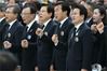 더불어민주당 이해찬(왼쪽 두번째부터), 자유한국당 황교안, 바른미래당 손학규 대표, 민주평화당 정동영 대표가 18일 오전 광주 북구 국립5·18민주묘지에서 열린 '제39주년 5·18민주화운동 기념식'에 임을 위한 행진곡을 부르고 있다.(사진=노컷뉴스 DB) |