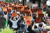 자유연대등 보수단체가 18일 오후 광주 금남로에서 500여명이 참석한 가운데 5.18유공자명단 공개 집회 후 광주에서 가장번화가인 충장로 일대를 다니며 유공자 명단을 요구하고 있다. 프리랜서 장정필 |