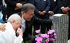 문재인 대통령이 18일 오전 광주 국립5·18민주묘지 희생자 안종필의 묘역에서 어머니 이정임 씨를 위로하고 있다. 연합뉴스 |
