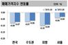 강남4구 아파트값은 지난주 -0.05%에서 금주 -0.04%로 하락폭이 감소했다. 서초구는 -0.04%→-0.02%로 하락폭이 줄었다. 강남권의 잠실 주공5단지, 대치 은마, 개포 주공1단지 등 대표 재건축 단지의 경우 매물이 상당수 소진되면서 시세가 전고점에 육박해가고 있다. 이 밖에 성동구는 지난주 -0.28%에서 이번주-0.12%로 낙폭이 대폭 감소했고 마포구는 -0.05%에서 -0.01%로, 동작구는 -0.07%에서 -0.04%로 하락폭이 줄었다.