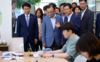 더불어민주당 이해찬 대표가 24일 오후 경기도 성남 분당구 고용복지플러스센터에서 열린 청년일자리를 위한 현장간담회에서 앞서 취업준비생들을 격려 방문하고 있다./연합뉴스 |