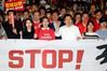 한국당은 이날 오후 6시반 서울 광화문 세종문화회관에 집결해 '문재인 STOP! 국민이 심판합니다' 규탄대회를 열었다.