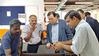 Lotte Corp. Vice chairman Hwang Kag-gyu, second from right, and IIT Madras Research Park engineers are looking at a lab test result on May 28, 2019. [Photo provided by Lotte Group] |