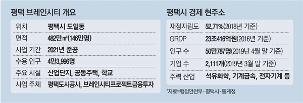 ![평택 브레인시티가 들어설 예정인 경기도 평택시 도일동 일대. 평택시와 평택도시공사, 브레인시티프로젝트금융투자는 도일동 일대 482만㎡(146만평)에 4차 산업을 선도하는 첨단산업단지, 대학과 연구기관 등이 어우러지는 산학연 클러스터 등을 조성해 경기 남부지역을 대표하는 자족 첨단 단지로 개발할 예정이다. [사진 제공 = 평택시]](http://static.news.zumst.com/images/18/2019/05/30/f4dbd1aad5f945218941a254e3baa2b9.jpg)