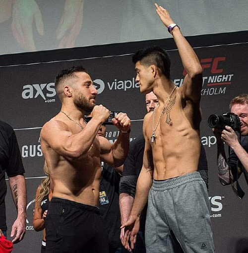 또한 1일 현지에서 열린 계체에서도 완벽한 몸매를 과시했다. 조성빈과 상대인 다니엘 테이머는 모두 계체에 통과한 후 촬영에 응했다. 테이머는 두 주먹을 쥐고, 조성빈은 자신의 닉네임인 ‘코리언 팔콘’의 상징인 세 발가락을 손으로 표현하며 팔을 높이 치켜 올렸다. 이후 두 선수는 웃으며 악수를 나눈 후 계체장을 내려왔다.