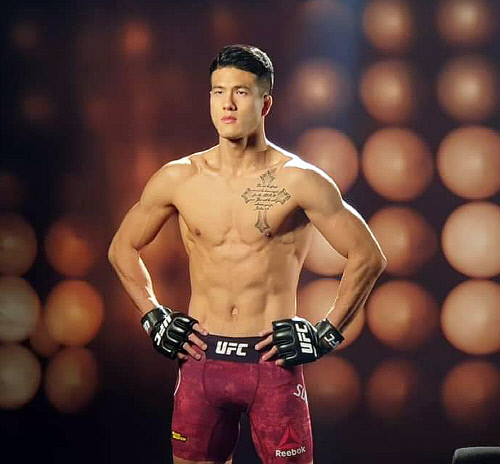 [스포츠서울 이주상기자] UFC 파이터 조성빈(26)이 그리스 조각 같은 몸을 뽐냈다. 조성빈은 오는 2일(한국시간) 스웨덴 스톡홀름에서 열리는 UFC Fight Night 153(이하 UFN 153)에서 스웨덴의 다니엘 테이머를 상대로 UFC 데뷔전을 가질 예정이다. 경기에 앞서 현지에서 프로필 촬영에 응한 조성빈은 수많은 조명을 배경으로 운동으로 다져진 식스팩과 근육을 과시했다.