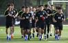 장애물을 놓고 몸을 푸는 준비운동이 끝난 후 선수들은 조끼를 입고 작은 지역 안에서 패스를 주고받는 미니게임을 진행했다.