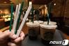 서울의 한 스타벅스 매장에서 일회용 플라스틱 빨대를 대체할 종이 빨대를 선보이고 있다. /사진=뉴스1 |