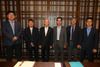 방송통신위원회가 인터넷동영상서비스(OTT) 사업자와 첫 간담회를 개최, 시장 현황을 파악하고 사업자 애로사항을 청취했다. (왼쪽부터)이병기 곰앤컴퍼니 대표, 김경익 판도라디비 대표, 김정렬 아프리카TV 이사, 김덕조 시냅스엠 대표 (오른쪽 끝)이효성 방통위원장 |