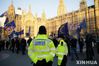 【런던=신화/뉴시스】8일(현지시간) 영국 런던의 의사당 밖에서 브렉시트에 반대하는 사람들이 EU기와 영국 국기를 들고 시위를 벌이고 있는 가운데 런던 경찰이 이를 지켜보고 있다. 2019.01.09. |