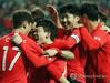 관중에게 인사하는 대표팀 |