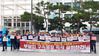 5·18역사왜곡처벌 광주운동본부와 민주노총 광주본부는 14일 광주 동구 5·18민주광장에서 기자회견을 갖고 검찰이 자유한국당 전당대회장에서 5·18망언 의원 제명을 촉구하며 집회를 벌인 관계자들에 대해 구속영장을 청구한 것을 비판하고 있다. |