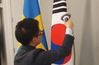 행사 시작 1시간 전부터 외교부 직원들이 행사장에 비치된 태극기 구석구석을 스팀다리미로 펴고 있었습니다. 다림질 후 한 걸음 떨어져 구김이 없는지 각은 잘 잡혔는지 태극기의 상태를 확인하는 세심함까지 보였습니다.
