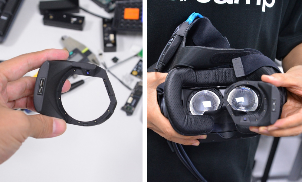< HTC 바이브에 끼워 시선을 추적하는 모듈을 개발했다 >