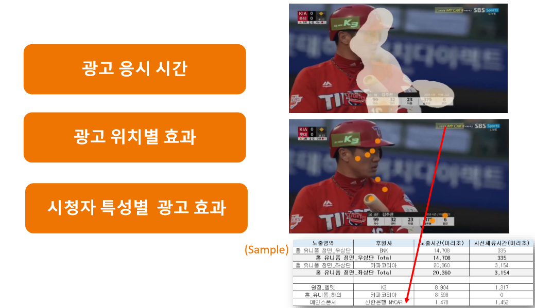 어느새 설립 5년차. 그동안 이렇다 할 매출은 없었다. 지난 시간 동안 정부 개발 과제와 투자 유치 등으로 기술 개발에 투입한 자금만 약 30억 원. 고맙게도 비주얼캠프가 바라보고 있는 기술의 미래 가치에 좋은 평가를 받아 이 자리까지 올 수 있었다. 시장 자체도 커지고 있다. 전세계 시선 추적 시장 규모는 2017년 기준 3억 2,100만 달러였으며, 2024년까지 약 16억 5,700만 달러로 성장할 것으로 전망된다(Zion Market Research). 또한, 여러 VC 및 해외 행사에서 확인한 메시지는 음성인식 다음 AI 기술은 시선 추적 기술로 넘어갈 것으로 예상 중이다.실제로 비주얼캠프를 향한 관심은 커지고 있다. 관심은 VR쪽에서 먼저 왔다. HMD를 착용한 사용자가 화면에서 어디를 보는지 분석해달라는 의뢰가 있었다. 한 예로 통합 정보분석 업체 닐슨은 프로야구 동영상을 보는 사람들의 시선을 분석했다. 사람들이 선수들 유니폼 중 어느 광고 부위를 많이 보는지, 광고 응시 시간은 얼마나 되는지, 시청자 특성별 광고 효과는 얼마나 되는지 종합적인 결과를 제공한 바 있다.