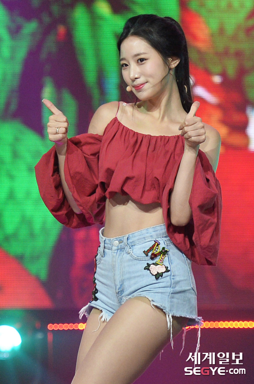 반면 같은 그룹 멤버인 서율(본명 서유리·21), 고운(20)은 각각 발목까지 오는 긴치마와 청바지를 입고 레드카펫에 등장해 더욱 비교됐다.