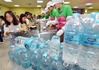 '붉은 수돗물' 사태로 학교 급식실에 쌓인 생수병 |