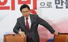 황교안 대표가 19일 국회에서 열린 당대표 및 최고위원-중진의원 연석회의에 들어서고 있다. (사진=연합뉴스) |