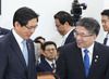 19일 서울 여의도 국회에서 자유한국당, 바른미래당 의원들이 불참한 가운데 열린 사법개혁특별위원회 회의 시작 전 박상기 법무부 장관(왼쪽)과 민갑룡 경찰청장이 대화하고 있다. 뉴시스 |