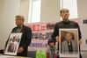 지난 2월 일본 참의원 의원회관에서 열린 '한국 대법원판결에 대해 생각하는 원내(院內)집회'에서 징용소송 원고의 유족인 박재훈(왼쪽), 이규매 씨가 피해자 사진을 들고 있다. [연합뉴스 자료사진] |
