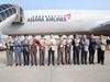 아시아나항공이 지난 19일 오후 인천국제공항에서 한창수 사장(왼쪽 6번째)을 비롯한 임직원들이 참석한 가운데 안전과 번영을 기념하는 A350 9호기 도입식 행사를 실시했다./사진제공=아시아나항공 |