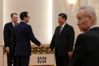 2019년 2월 15일 중국 베이징 인민대회당에서 열린 2차 미·중 고위급 무역협상에 앞서 중국 시진핑(오른쪽에서 둘째) 국가주석이 미국 스티븐 므누신(왼쪽에서 둘째) 재무장관과 만나 악수하고 있다. 맨 오른쪽은 중국 류허 부총리, 왼쪽 끝은 로버트 라이트하이저 미국 무역대표부 대표다. /AP 연합뉴스 |