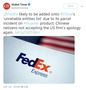 중국 환구시보의 영문판인 글로벌타임스는 23일 트위터를 통해 페덱스가 중국의 '신뢰할 수 없는 실체 명단'에 추가될 가능성이 있다고 전했다.