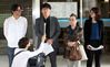 일제 강제징용 피해자들의 법 률대리인인 임재성 법무법인 해마루 변호사(왼쪽에서 두번째)가 26일 오후 서초구 서울고등법원에서 열린 일본 신일철주금 상대 손해배상 2심 선고를 마친 뒤 기자회견을 하고 있다. 뉴시스 |